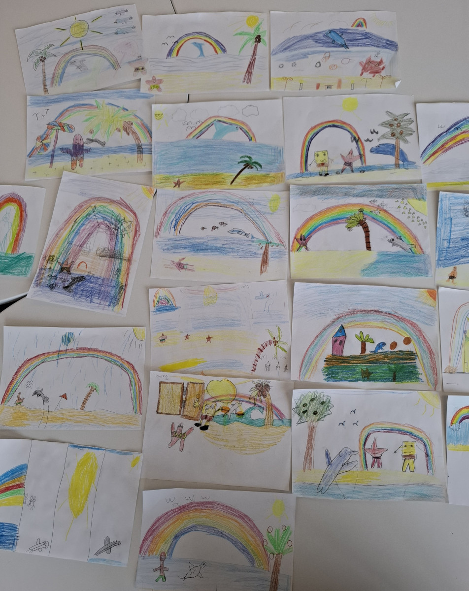 Im Workshop Sprache stand das Verständnis von Menschen mit anderen Herkunftssprachen im Vordergrund. Die Kinder hörten eine Geschichte, die aus einem englisch-deutschen Text bestand. Aus dem gehörten und verstandenen Inhalt sollten sie ein Bild malen. So entstanden viele verschiedene Bilder, da jedes Kind unterschiedlich viel vom eigentlichen Text verstanden hat. Darüber hinaus haben die Sozialarbeitenden mit den Kindern ein selbstbewusstseinsstärkendes Lied gehört und einen kleinen Tanz einstudiert.