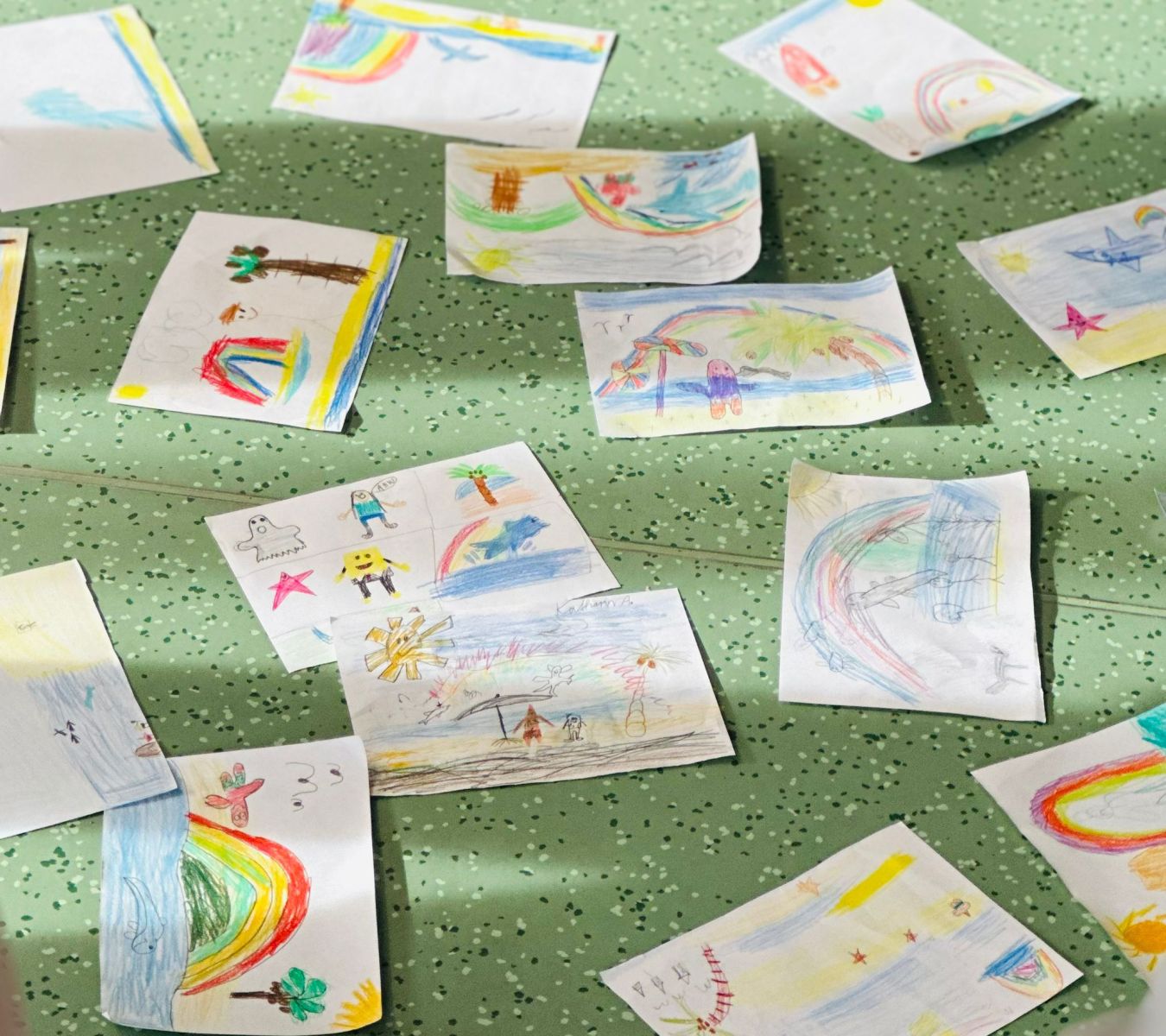 Im Workshop Sprache stand das Verständnis von Menschen mit anderen Herkunftssprachen im Vordergrund. Die Kinder hörten eine Geschichte, die aus einem englisch-deutschen Text bestand. Aus dem gehörten und verstandenen Inhalt sollten sie ein Bild malen. So entstanden viele verschiedene Bilder, da jedes Kind unterschiedlich viel vom eigentlichen Text verstanden hat. Darüber hinaus haben die Sozialarbeitenden mit den Kindern ein selbstbewusstseinsstärkendes Lied gehört und einen kleinen Tanz einstudiert.