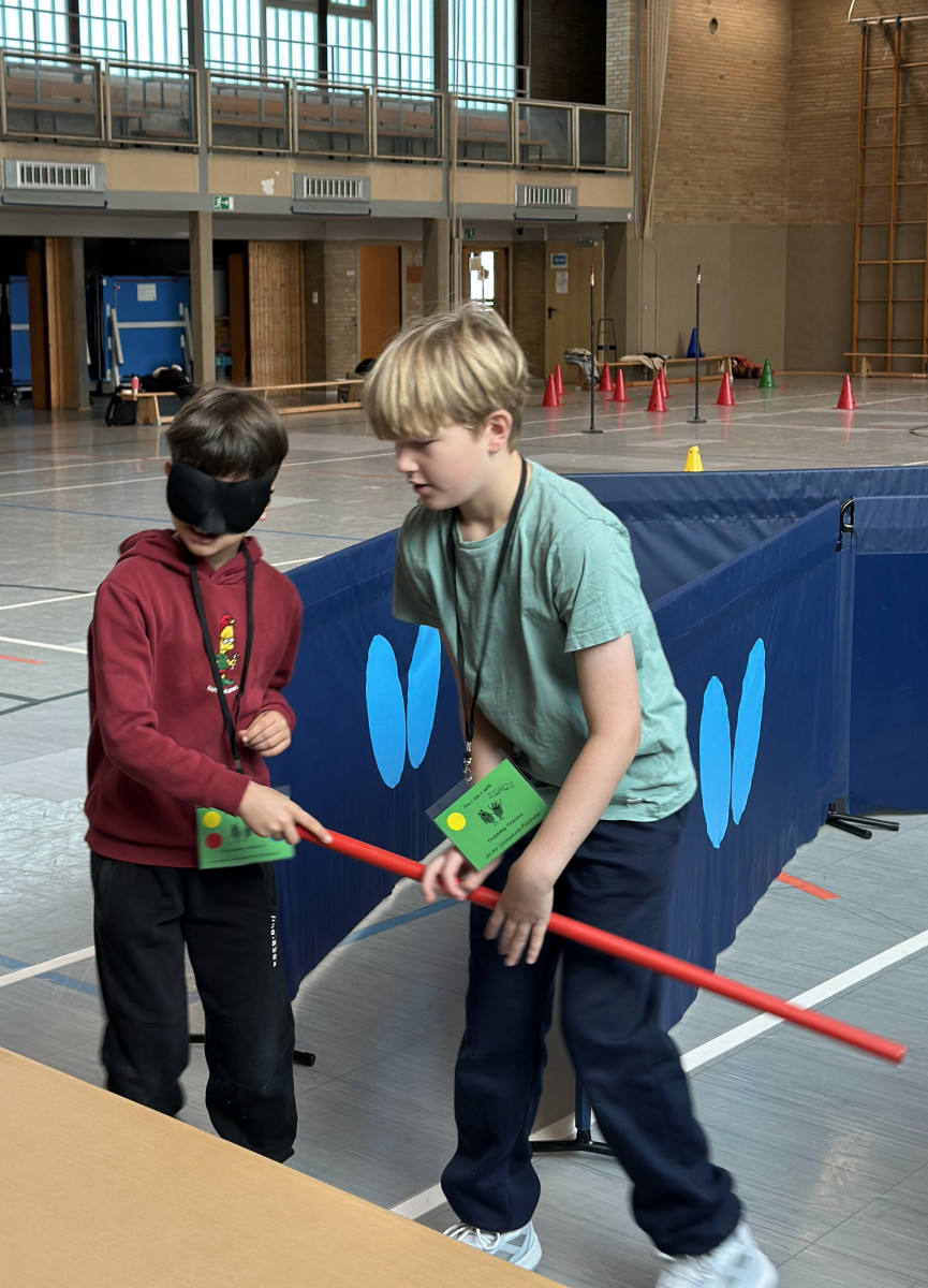 Am Mittwoch, den 24.05.2023, fand an der Limesschule ein Sporttag statt. An diesem Tag lautete das Motto an allen hessischen Grundschulen Hessen bewegt sich und auch wir Limesschüler/-innen wollten mitmachen. Der Tag begann mit einem gesunden Frühstück in den Klassen. Danach trafen sich alle Schüler/-innen auf dem Schulhof zu einem gemeinsamen Tanz. Er hieß Celebration und das bedeutet Feier oder Fest. Nach dem Tanz konnten sich alle Kinder zwei Stunden lang an vielen verschiedenen Stationen sportlich austoben. Man konnte zum Beispiel auf Stelzen laufen, auf Pedalos balancieren, Ringe in Ziele werfen, Kartoffeln mit Löffeln transportieren, Gummitwist lernen, Sackhüpfen machen, Dosen abwerfen, tanzen, auf eine Torwand schießen und noch sehr vieles mehr. Zum Abschluss hatte sich Herr Schumann noch etwas richtig Tolles überlegt. Zuerst stellten sich die Zweit- und Viertklässler/-innen in zwei Reihen auf und bildeten eine Gasse, durch die dann die Erst- und Drittklässler/-innen unter großem Jubel mit ihren selbstgebastelten Länderfähnchen hindurchlaufen durften. Danach waren die Zweit- und Viertklässler/-innen dran. Die bunten Fähnchen sahen wunderschön aus und es machte uns allen wirklich viel Freude. Am Ende versuchten wir noch, mit allen Kindern in einem riesengroßen Kreis eine La-Ola-Welle zu machen. Das klappte nicht so ganz, war aber trotzdem lustig. Der Sporttag war ein voller Erfolg und jeder, der dabei war, ging mit einem guten Gefühl nach Hause.