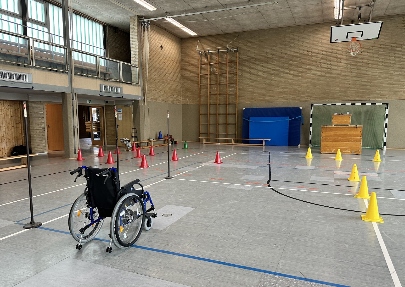 Beim Workshop Handicap konnten die Kinder erleben und erfahren, wie es ist, mit unterschiedlichen körperlichen Beeinträchtigungen umzugehen. Dank der Unterstützung des Sanitätshauses medrob GmbH Pohlheim in der Neuen Mitte konnte der geplante Rollstuhlparcours verwirklicht werden. Hier erfuhren die Kinder, wie es ist, wenn man nicht mehr laufen kann. Zudem haben die Kinder einen Blindenparcours durchlaufen. Sie haben weiterhin versucht, sich Kleidung mit nur einem Arm anzuziehen, ein Kartenhaus mit eingeschränktem Tastsinn zu bauen sowie stille Post mit einer simulierten Schwerhörigkeit zu spielen.