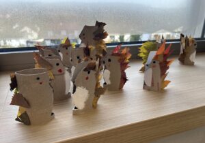 Passend zum Herbst wurden im Rahmen des Kunstunterrichts des Jahrgangs 1 Pilze aus Papierschnipseln gestaltet.